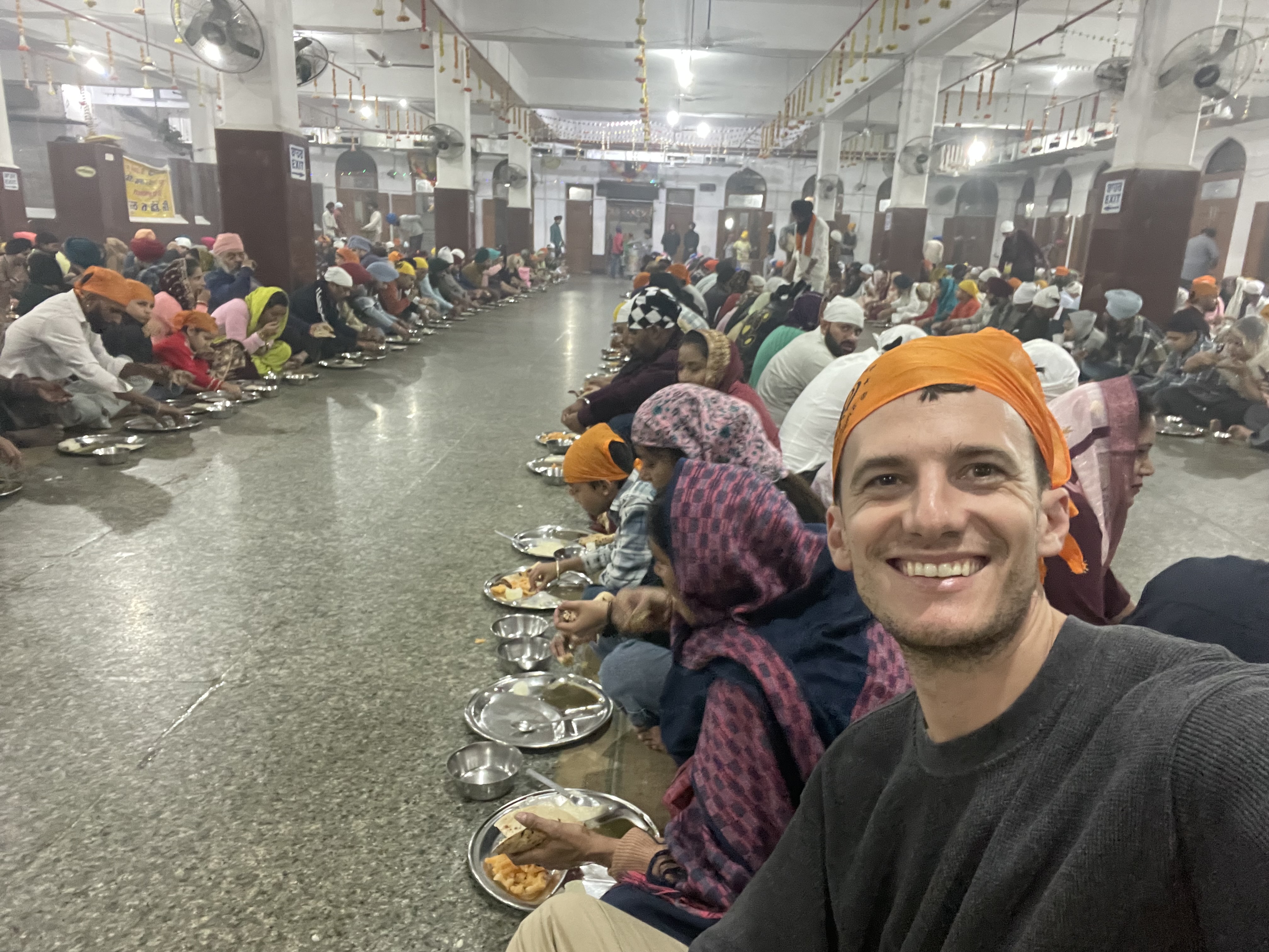 It was 19:30 and I was hungry. So, I headed to the langar, the temple’s free kitchen. It is the world’s busiest kitchen serving 50,000-200,000 people per day (closer to 200,000 today on the holiday). I’m not sure if it can be considered a restaurant but if so, it would also be the world’s busiest restaurant.