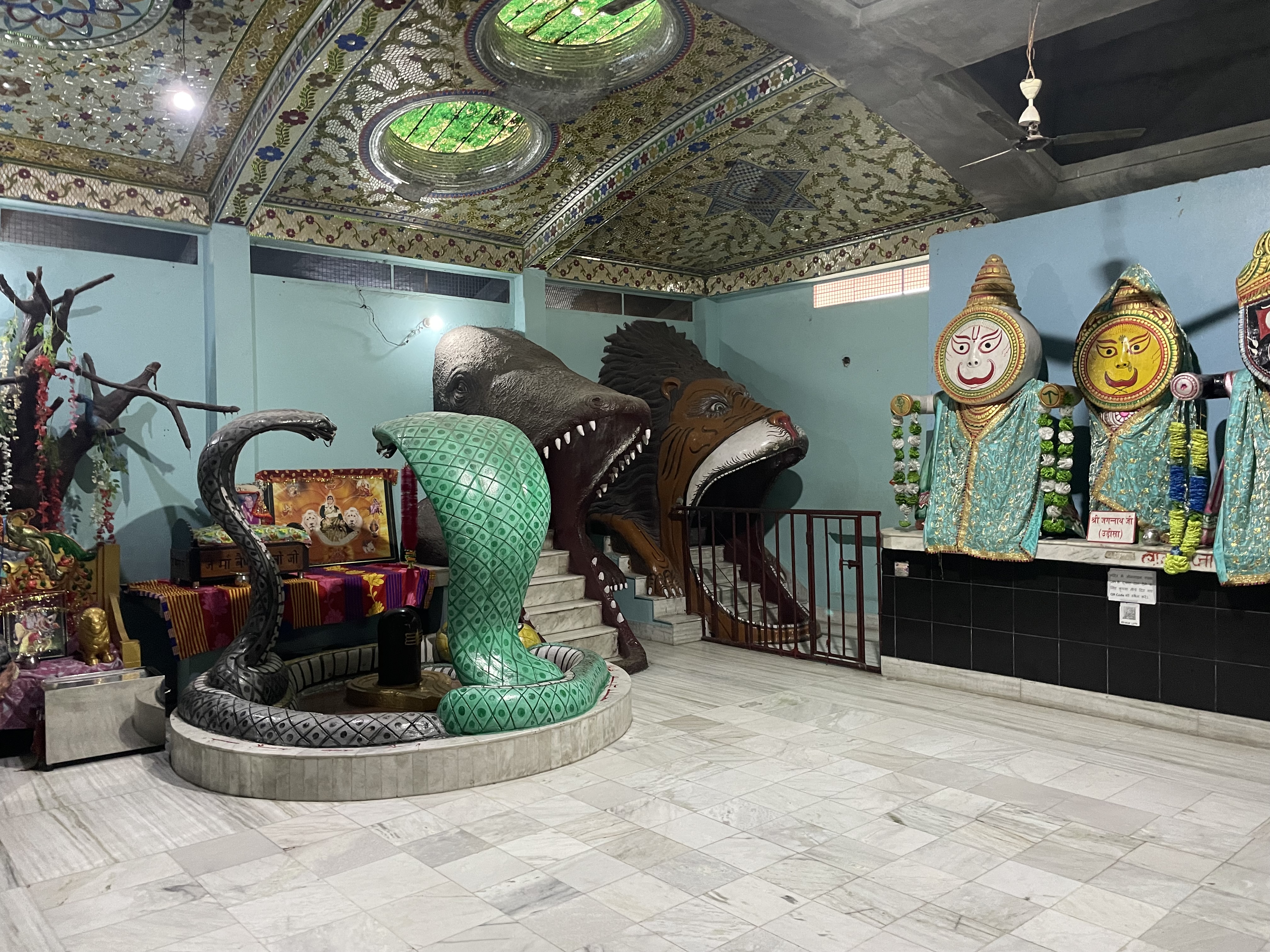 Next, I took a rickshaw to a Hindu temple known as Mata Lal Devi Mandir. It was built in 1989 and is bizarre to say the least. One of the main deities is an old human woman named Lal Devi. People worship her for fertility. Once I entered the temple, I saw shown to a staircase leading me on a 30-minute maze. I crawled through tunnels and saw insane art on walls.
