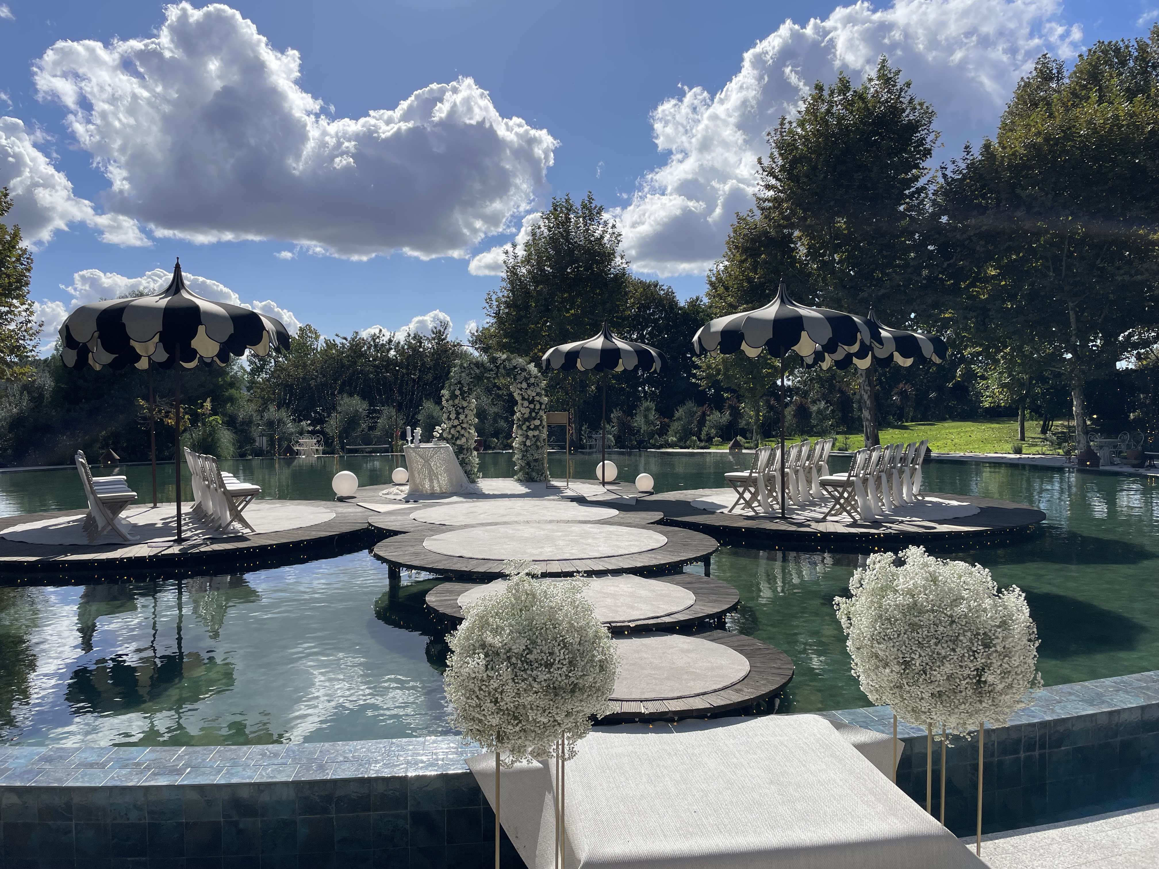 The ceremony took place on an island in an artificial lake.