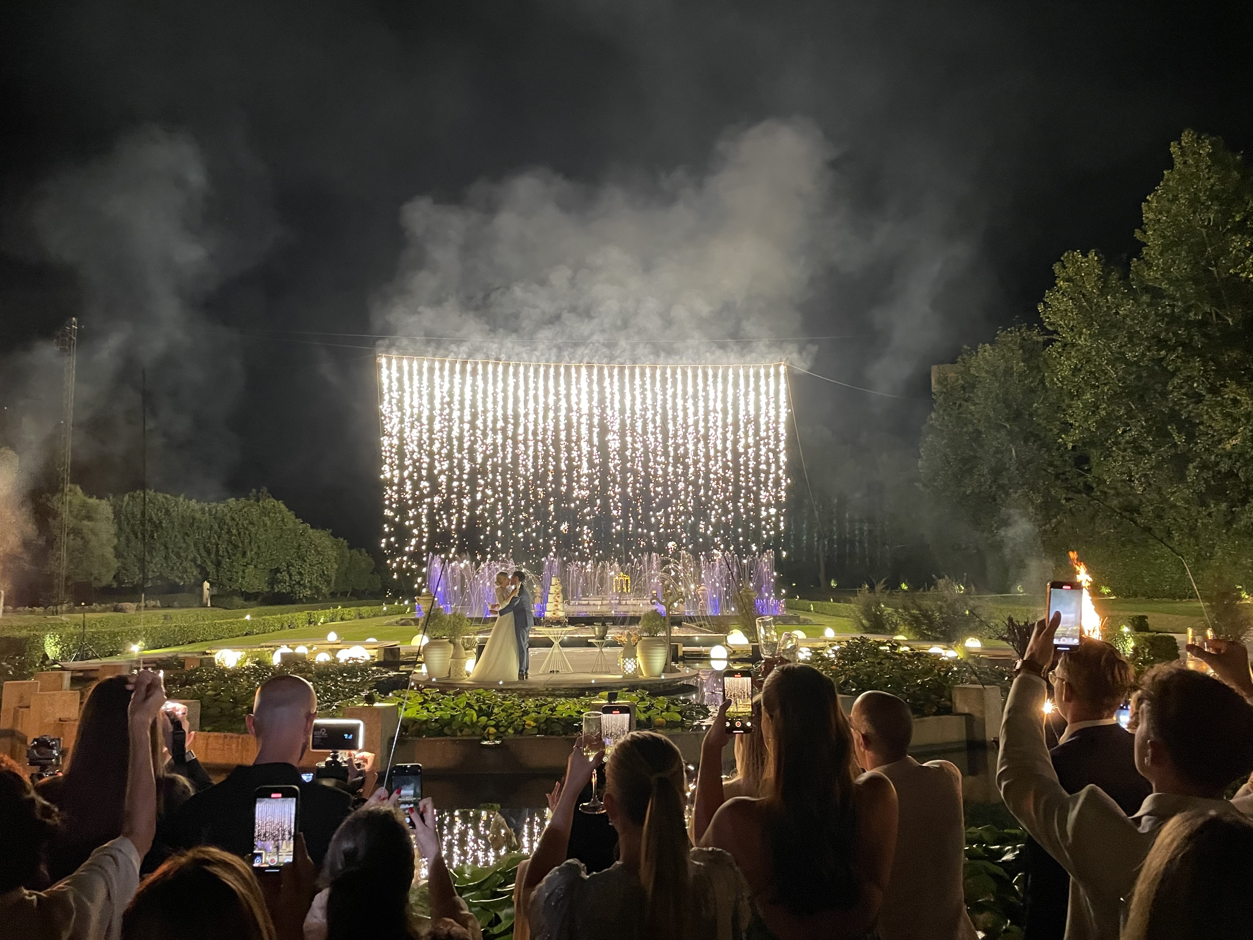 Then we headed outside for the cake cutting which took place in front of a massive wall of fire.