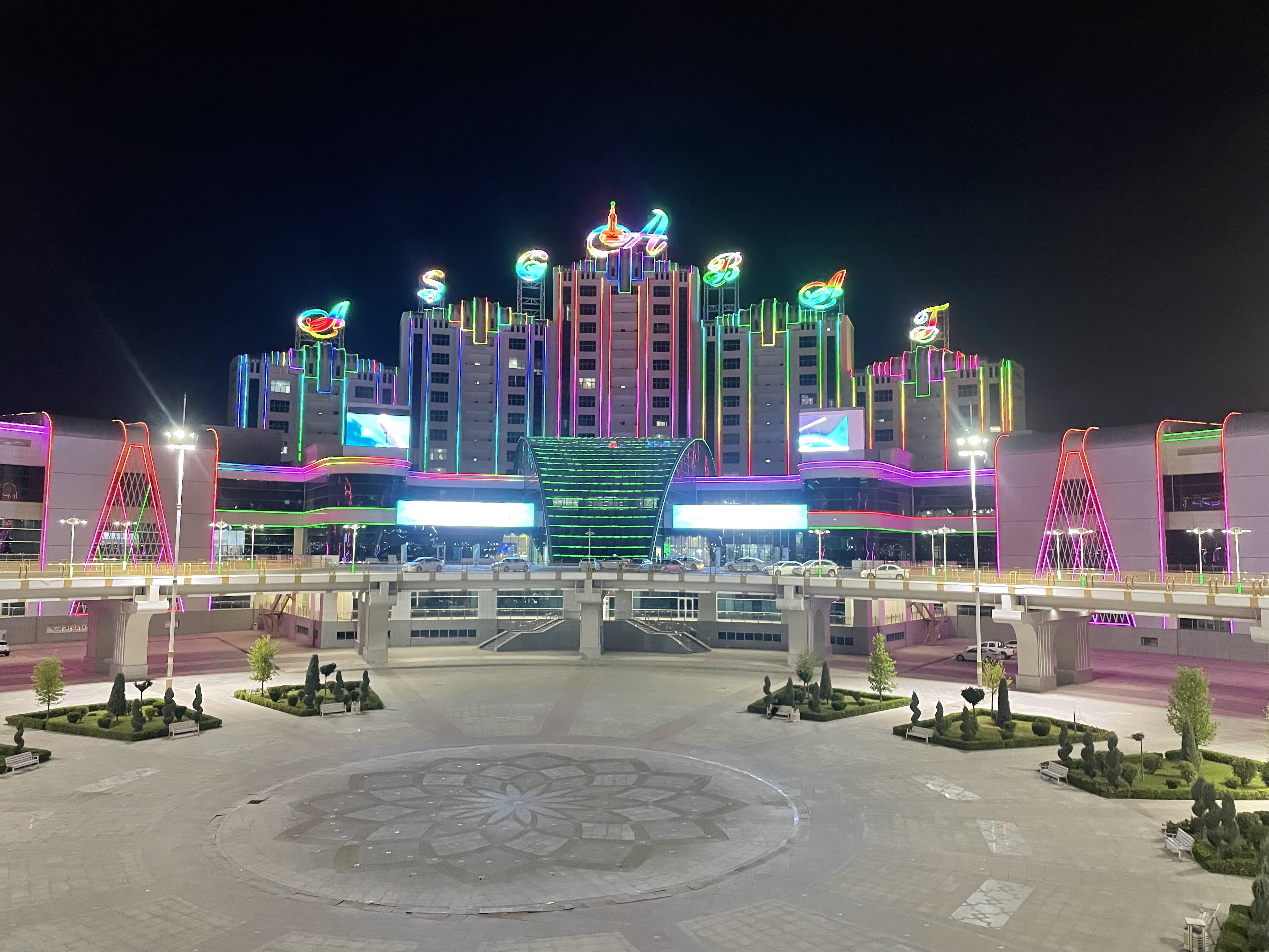 Finally, we got to do a night drive to see all the monuments of Ashgabat lit up in neon. It’s all so strange and beautiful!