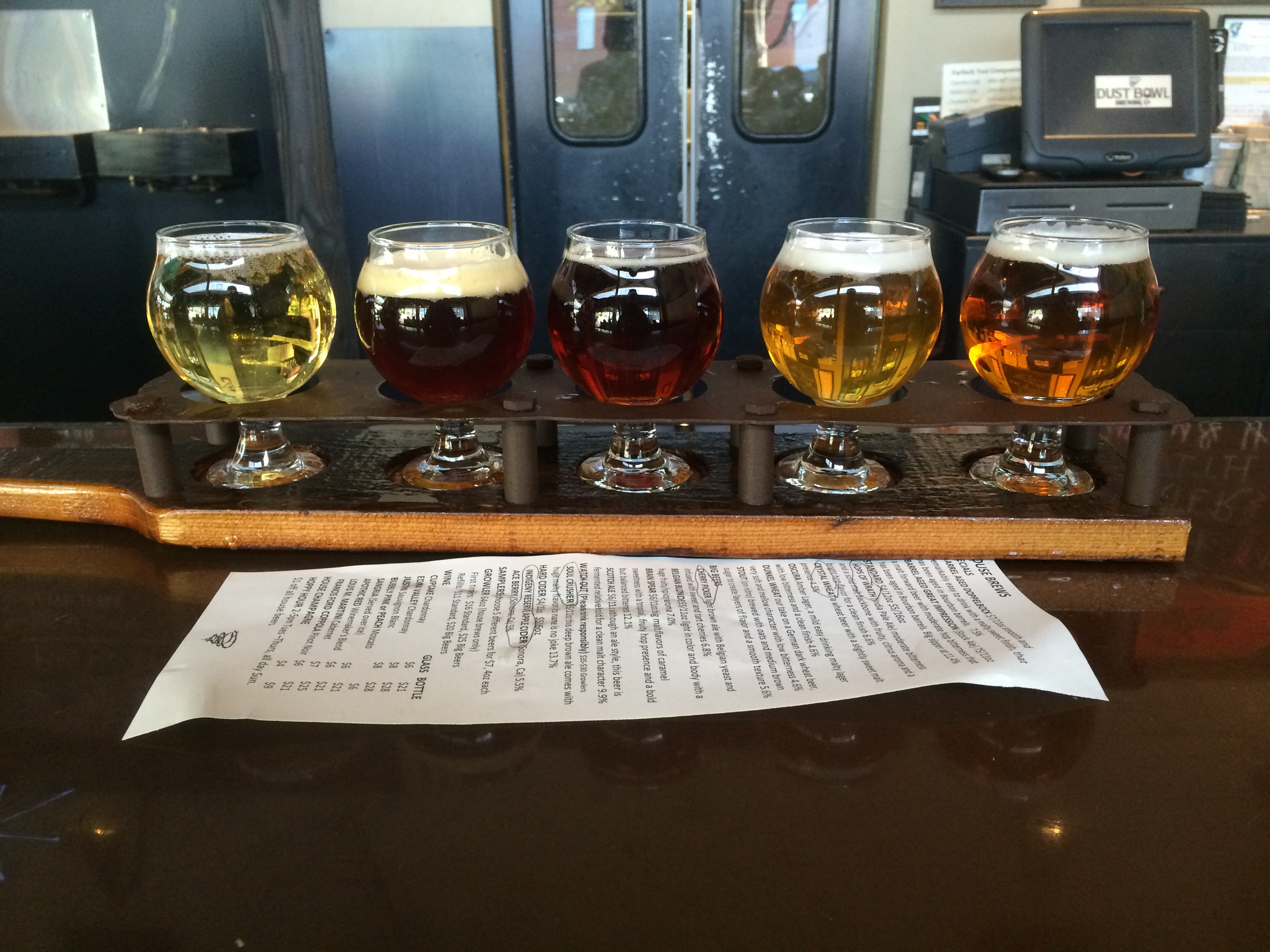30 minutes past Merced is the town of Turlock, population 70,000. Unlike Merced, Turlock had a very compact downtown and Main Street with lots of trees and shops. After a quick drive through the town, I stopped at the Dust Bowl Brewing Company in downtown. I ordered the sampler, which included their signature IPA (Hops of Wrath), a local cider, a cherry beer, and an imperial ale with 13.7% alcohol called Soul Crusher. Even though I only got 3 ounce pours of each, the Soul Crusher definitely lived up to its name.