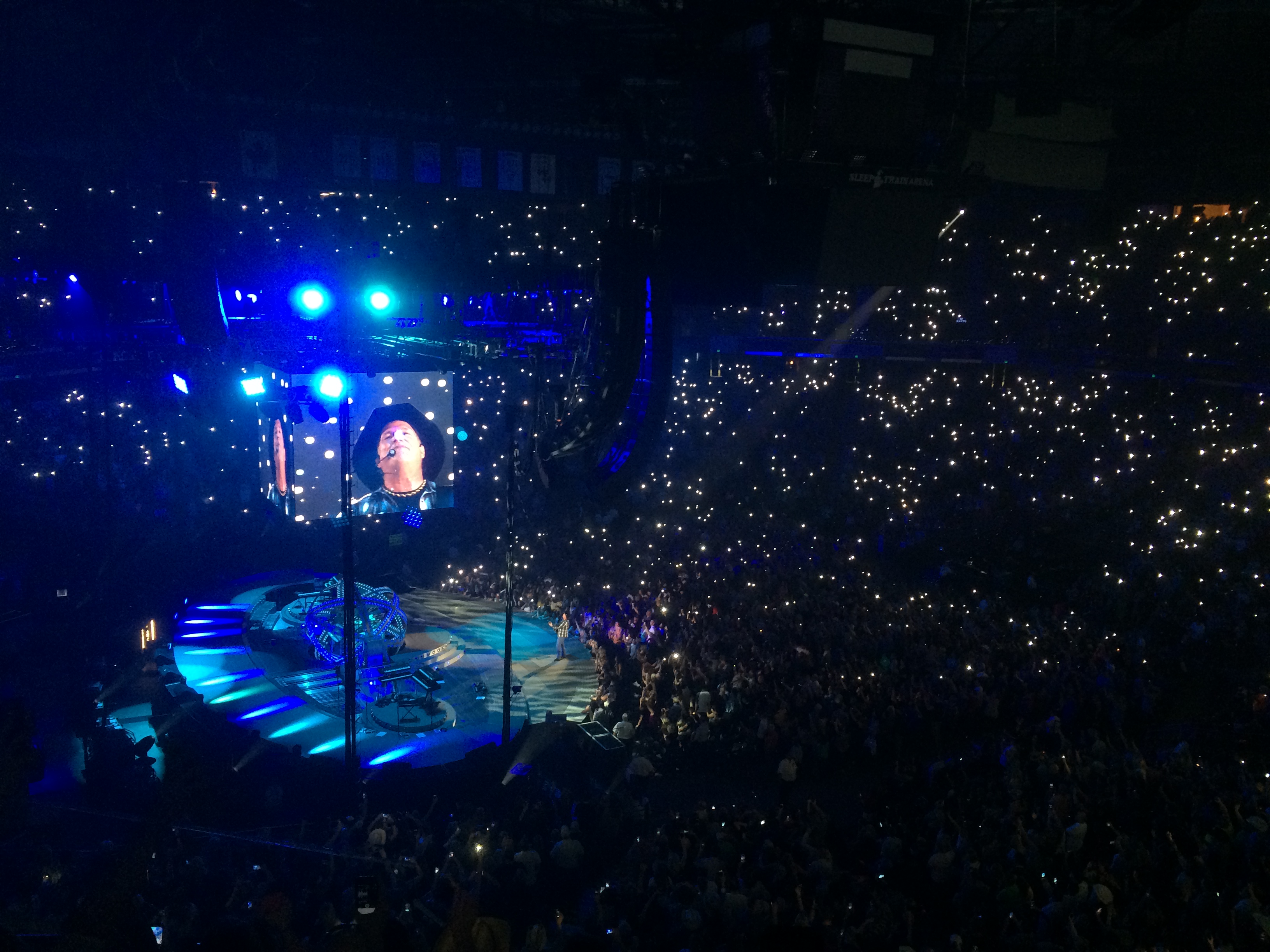 The opener came on around 7:40. She was a songwriter who had written songs for Garth’s wife Trisha Yearwood and was very good in her 5-song set. 45 minutes later, they started the 5-minute countdown. Immediately people started cheering and stomping their feet.