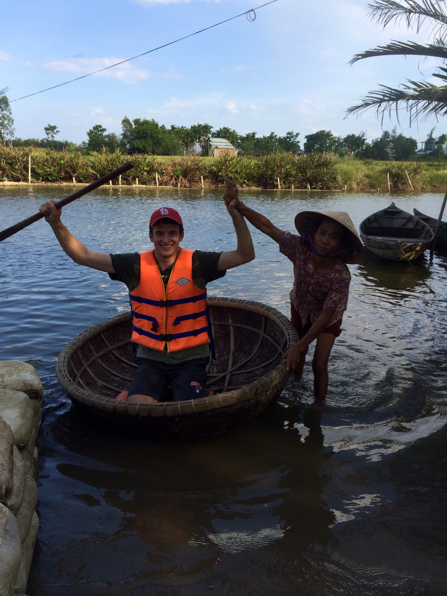 One of those crafts was learning how to paddle a Vietnamese roundboat. Everyone else in the group paddled accidentally themselves down the river, but I managed to paddle the boat across the river and back. The villagers were all impressed.