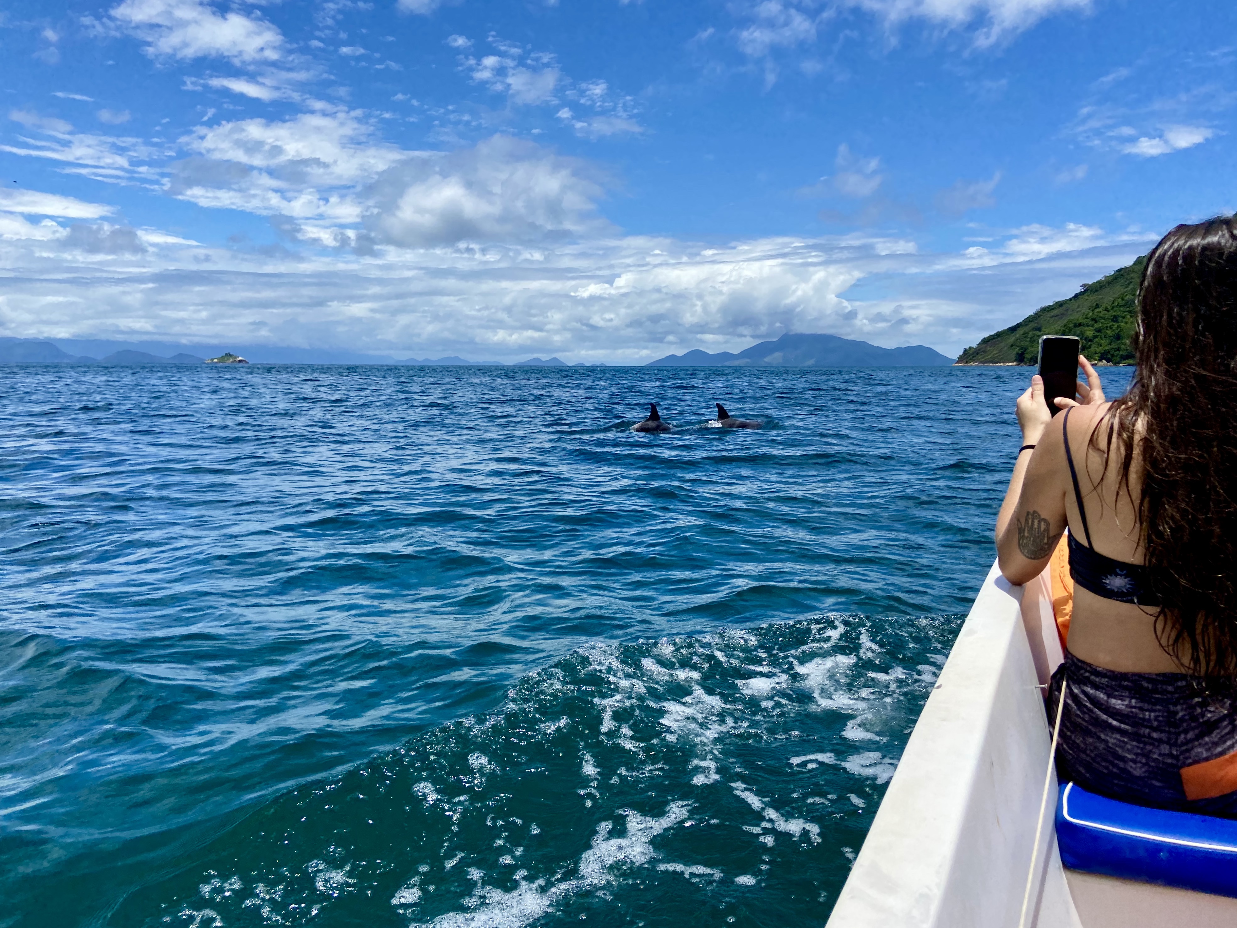 We got one of the last boats heading back to the mainland. The weather on Ilha Grande was good, but we saw a huge storm looming over the mainland. We braced ourselves as the boat charged through the waves towards the storm.