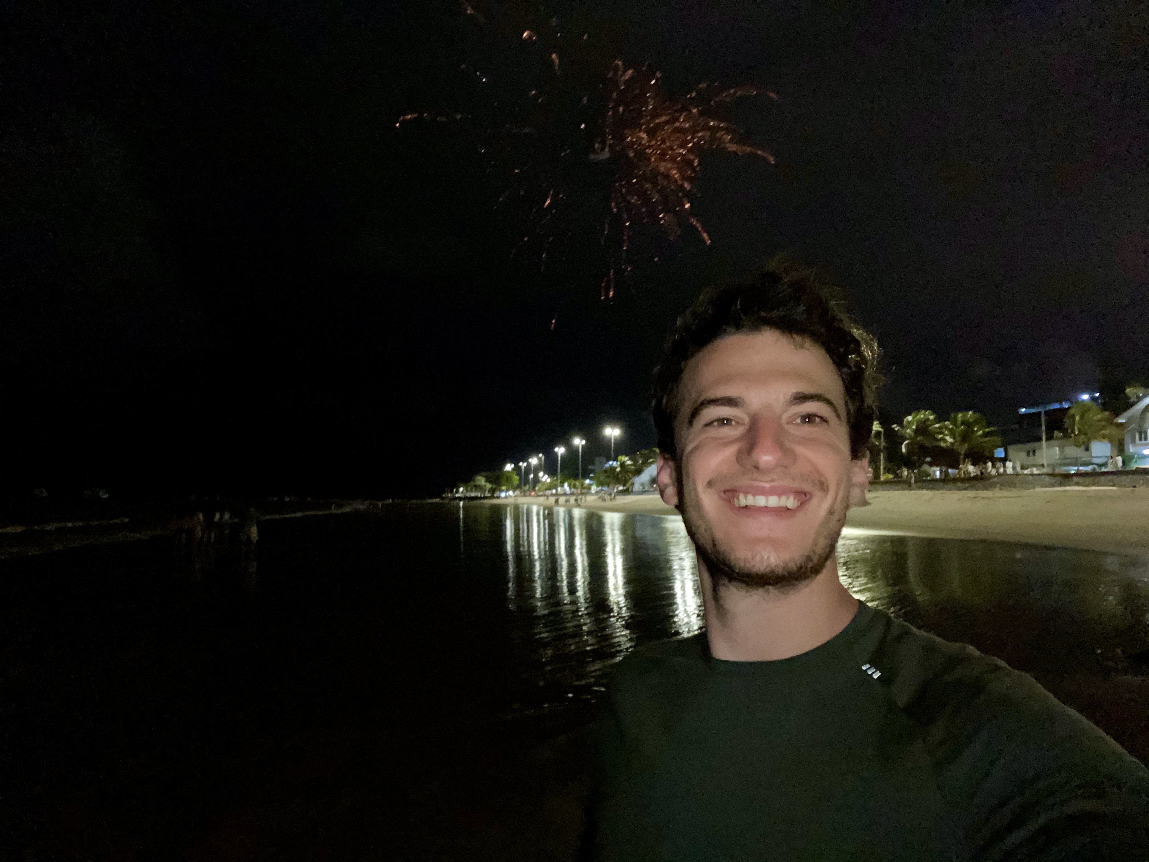 Miraculously, I woke up at 23:40 with just 20 minutes before the new year! I decided to do what Brazilians normally do: go to the beach. It is tradition to wear all white as it represents a pure new year. Additionally, you can wear other colors (usually on your underwear) for extra wishes. Red is for love and yellow is for wealth. I didn’t have anything white, red or yellow so I wore green which I decided would represent money since I need to find a job in 2021.