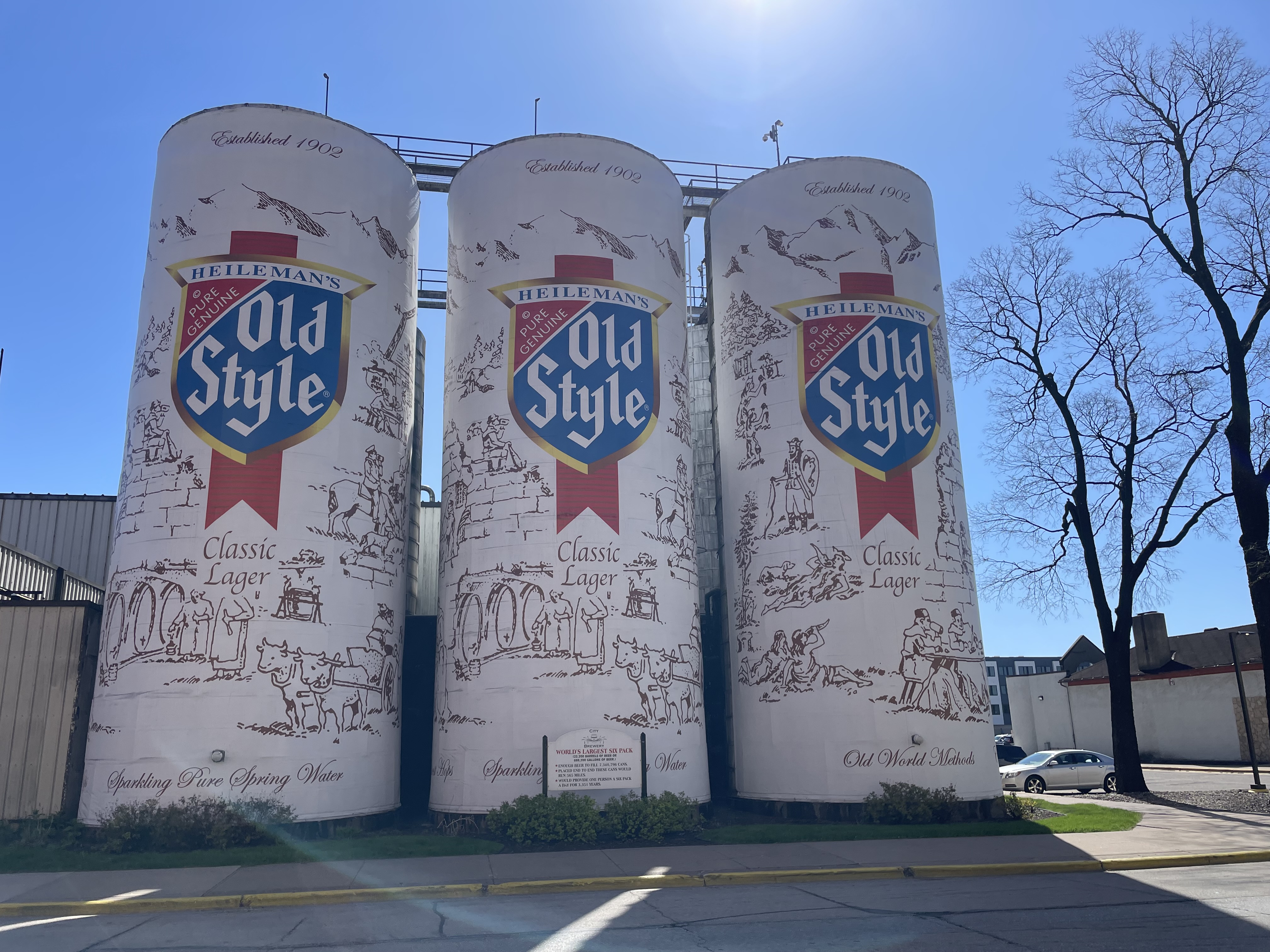 Just across the street from the brewery is the World’s Largest Six Pack – painted like a six pack of Old Style.