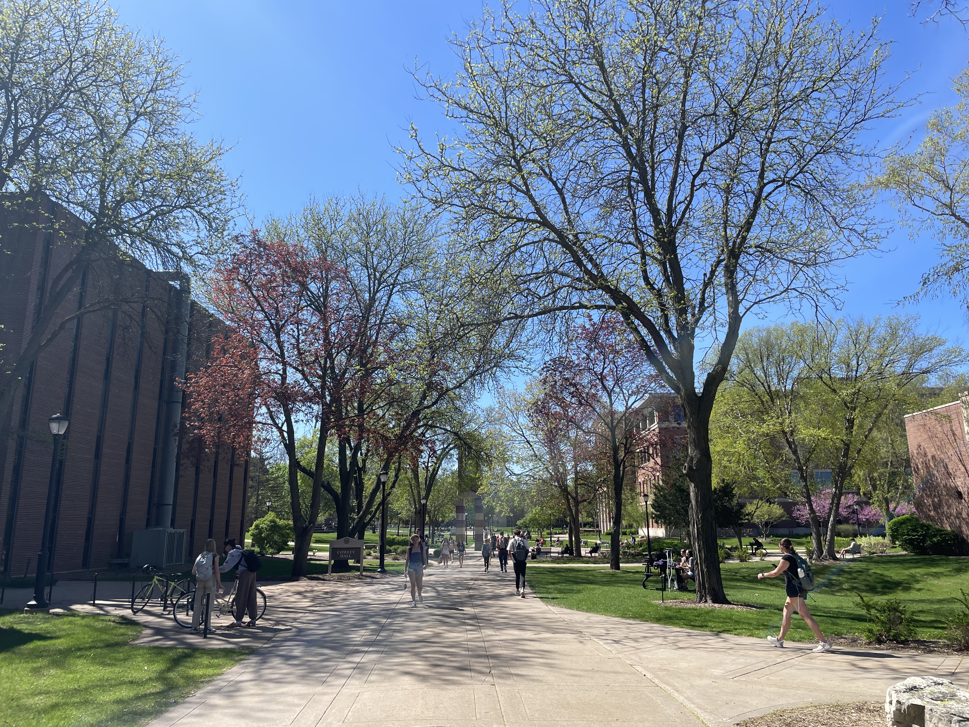 Next, I visited La Crosse’s main economic driver: the University of Wisconsin La Crosse. UWL is a public university with 10,000 students. It was a gorgeous day in the mid-70’s so everybody was out and about.