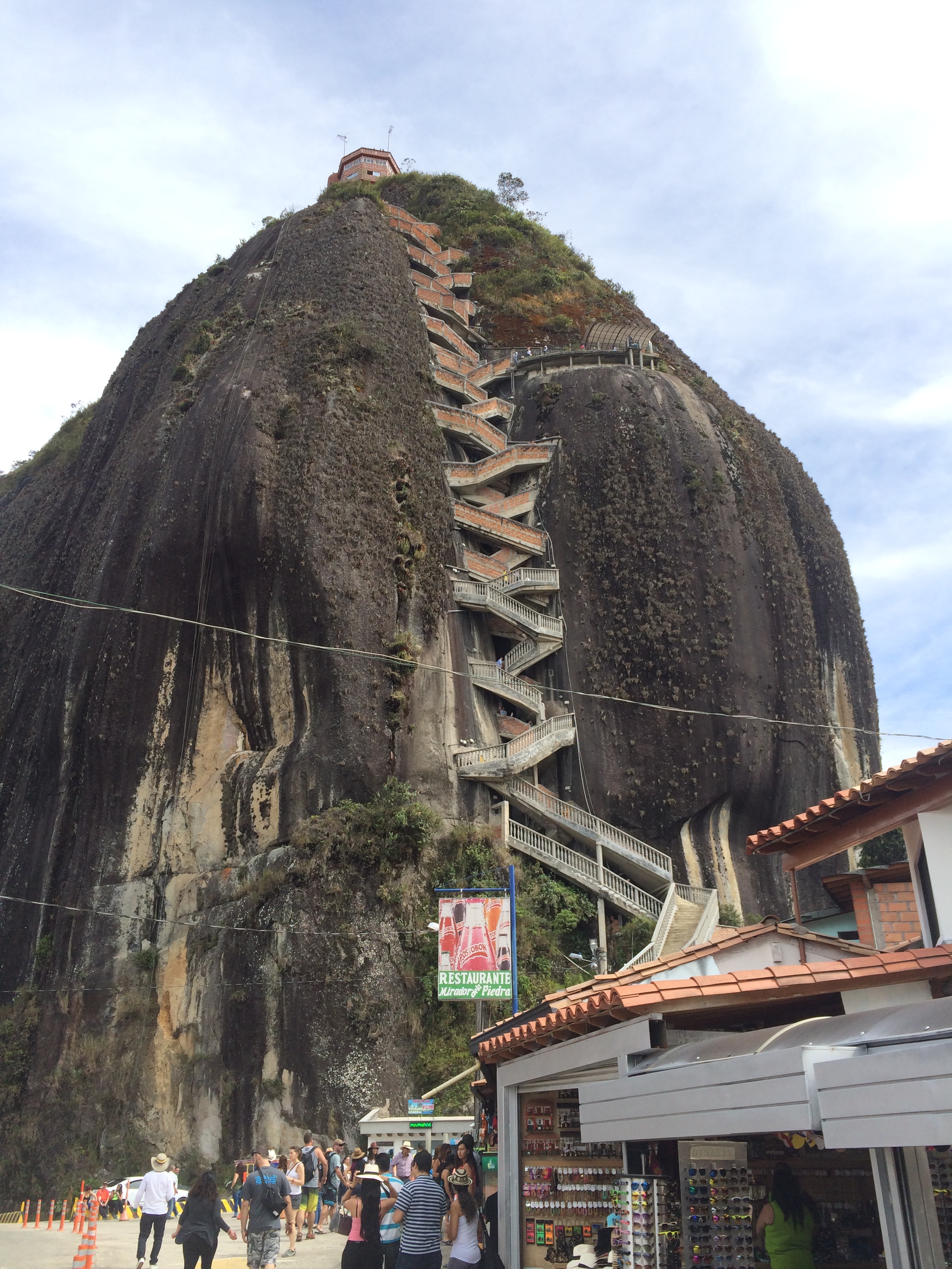 We got back in the bus and headed over to Guatape rock. The rock was giant. We parked at the bottom and had to climb 740 steps to the top. At the bottom there was a sign that said “Welcome to The Rock. ‘The Greatest View in the World”. The steps were built in a crevasse in the rock- it really felt like it should be in India. I started climbing and didn’t stop until reaching the top. The climb took about 15 minutes.