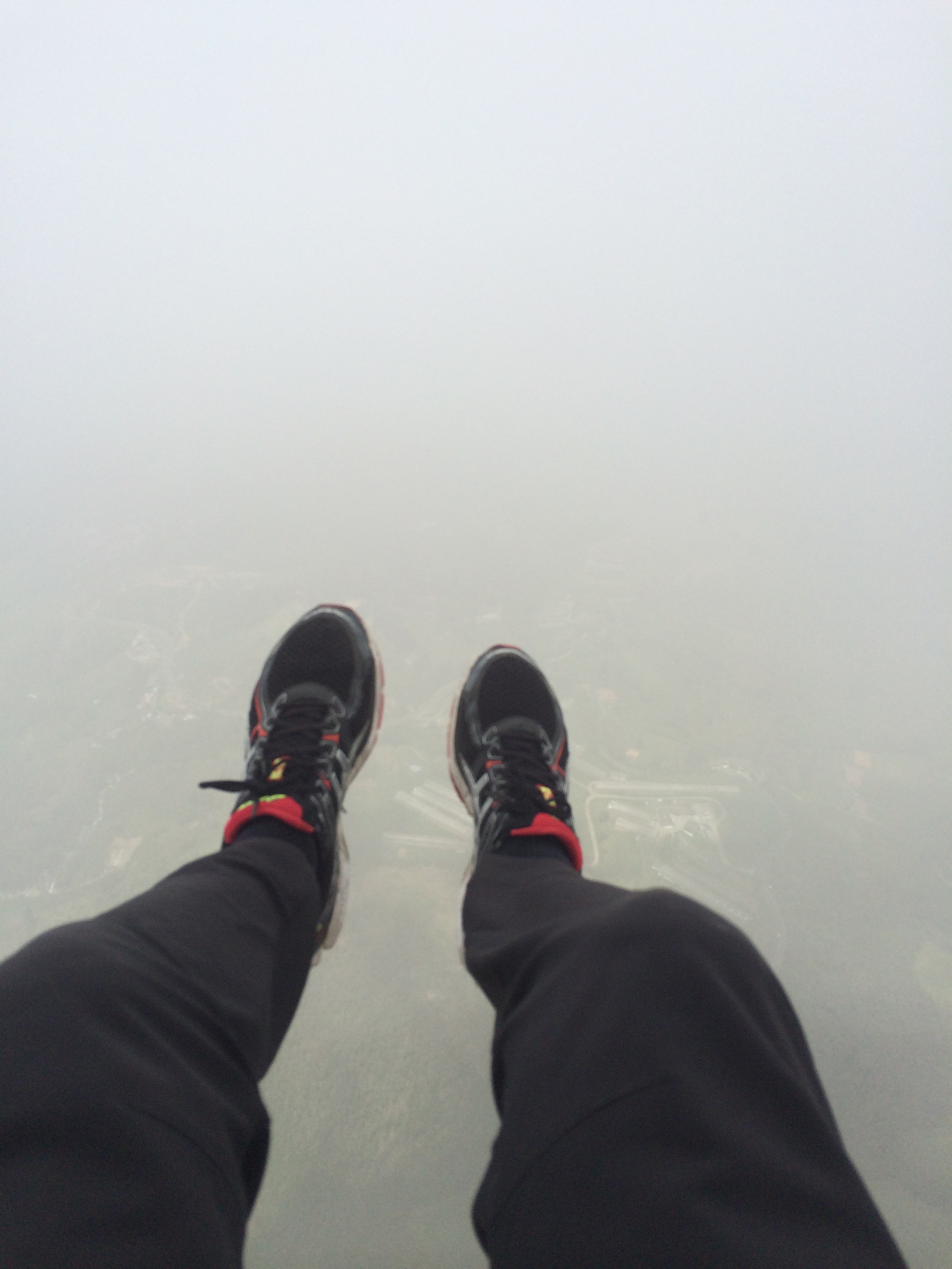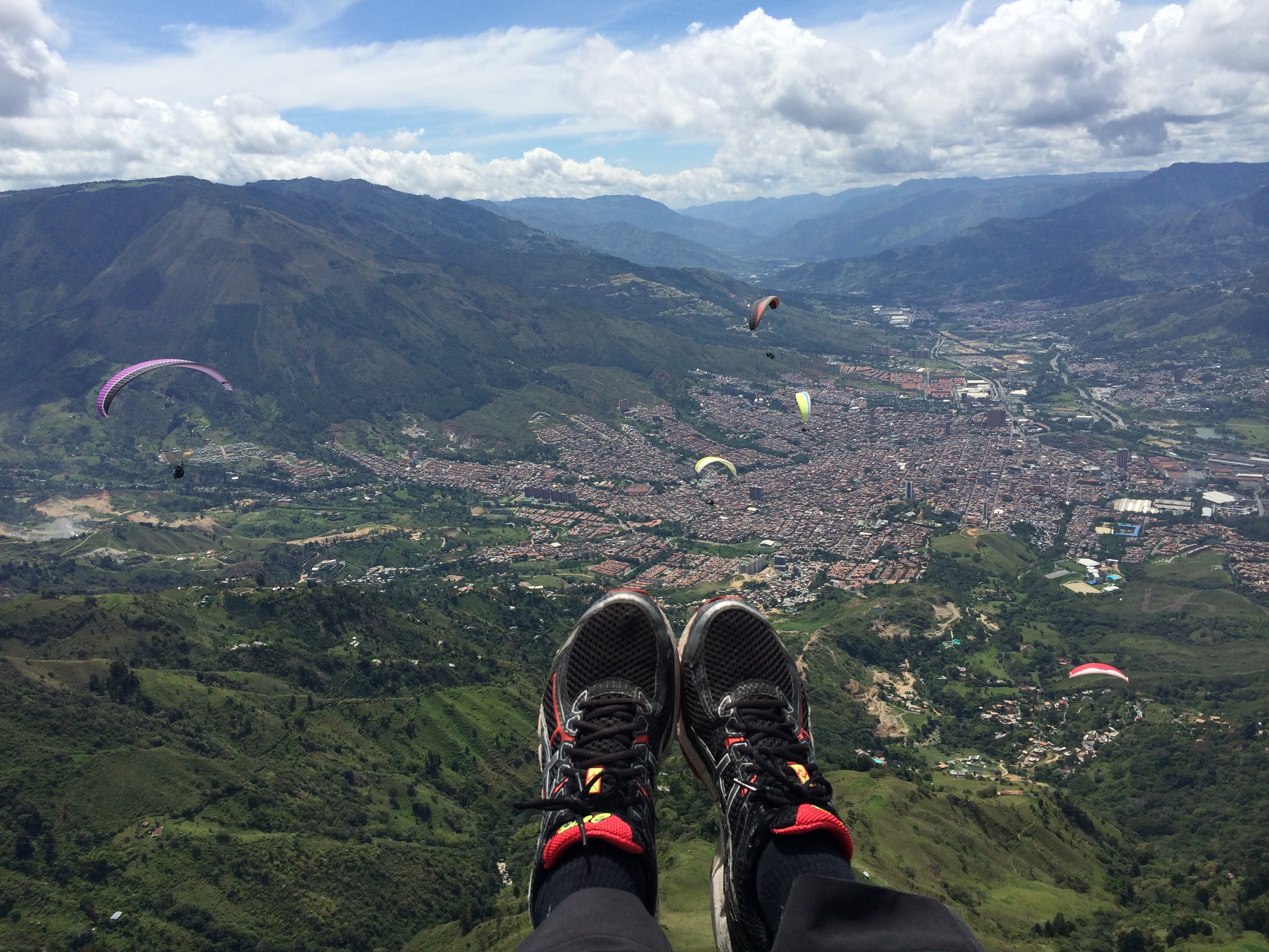 The shop was on the side of a huge mountain overlooking the city. The lady asked me if I wanted to paraglide. I said yes and she gave me a form for my name, email, and country. After filling it out, I paid and the lady gave me an orange voucher. “Walk up that mountain and give this to Christian, your pilot” she said. No waivers, no safety briefing, no nothing. I walked up to the landing strip and handed my voucher to a guy who I am assuming is Christian. 2 minutes later, we were strapped in for the tandem paraglide. Christian shouts “correra” and we run down the hill as we go airborne.