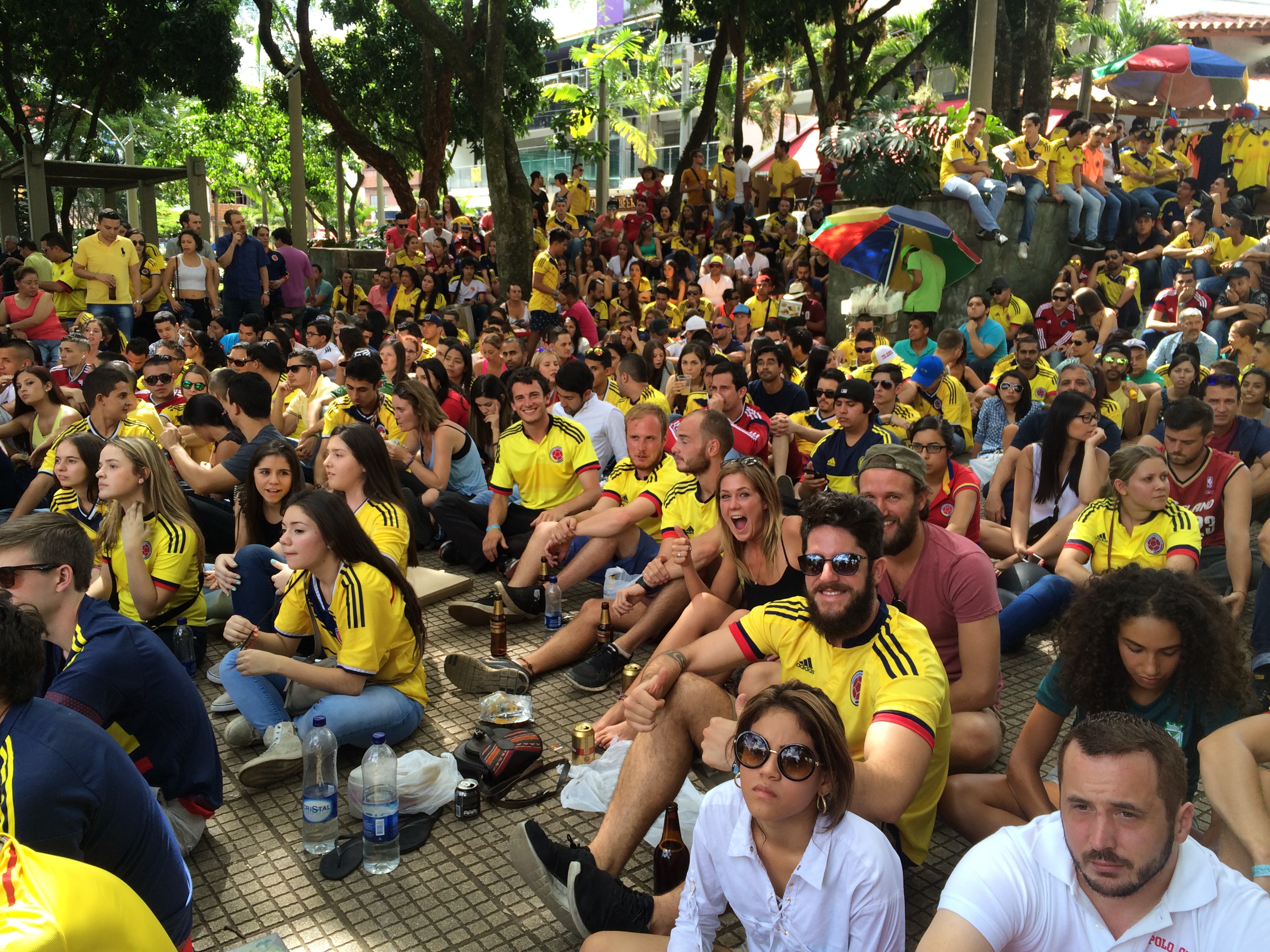 I headed to Parque Lleras, the center of all nightlife in Medellin. Today, however everybody was day drinking in their yellow jerseys. It felt a lot like St Louis during postseason baseball or Gameday in a college town except that the game is in Chile and everyone is watching on the big screen. The fans went wild everytime Colombia for the ball past the midline. Unfortunately they didn’t score a goal- who knows what would happen then. They ended up losing 1-0 to Venezuela. Interestingly, nobody left the game early. Not even by a second. Despite the loss, it was fun to experience the party atmosphere.