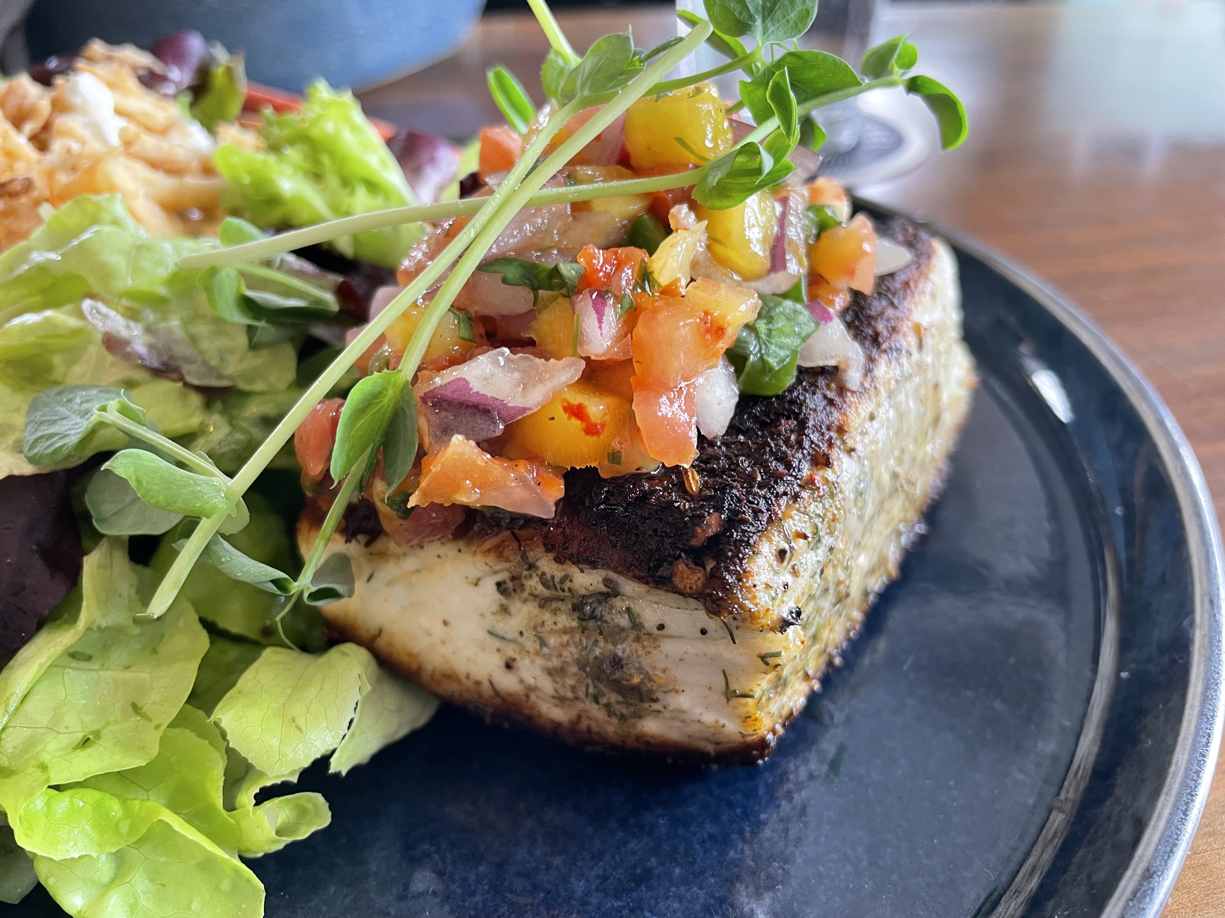 After Green Gabling out, it was time to get some food. Everybody on the island and my Lonely Planet recommended Blue Mussel Café in the town of North Rustico 10 minutes to the east. North Rustico is a commercial fishing village. The restaurant had a 45–60-minute wait but I was able to get in without a wait at the bar. Based on the staff’s recommendation, I ordered the halibut which was apparently swimming in the ocean earlier this morning. I do not say this lightly: this was maybe the best fish I have ever eaten. It was chewy and textured while also moist. Every meal here on PEI has been a perfect 10.