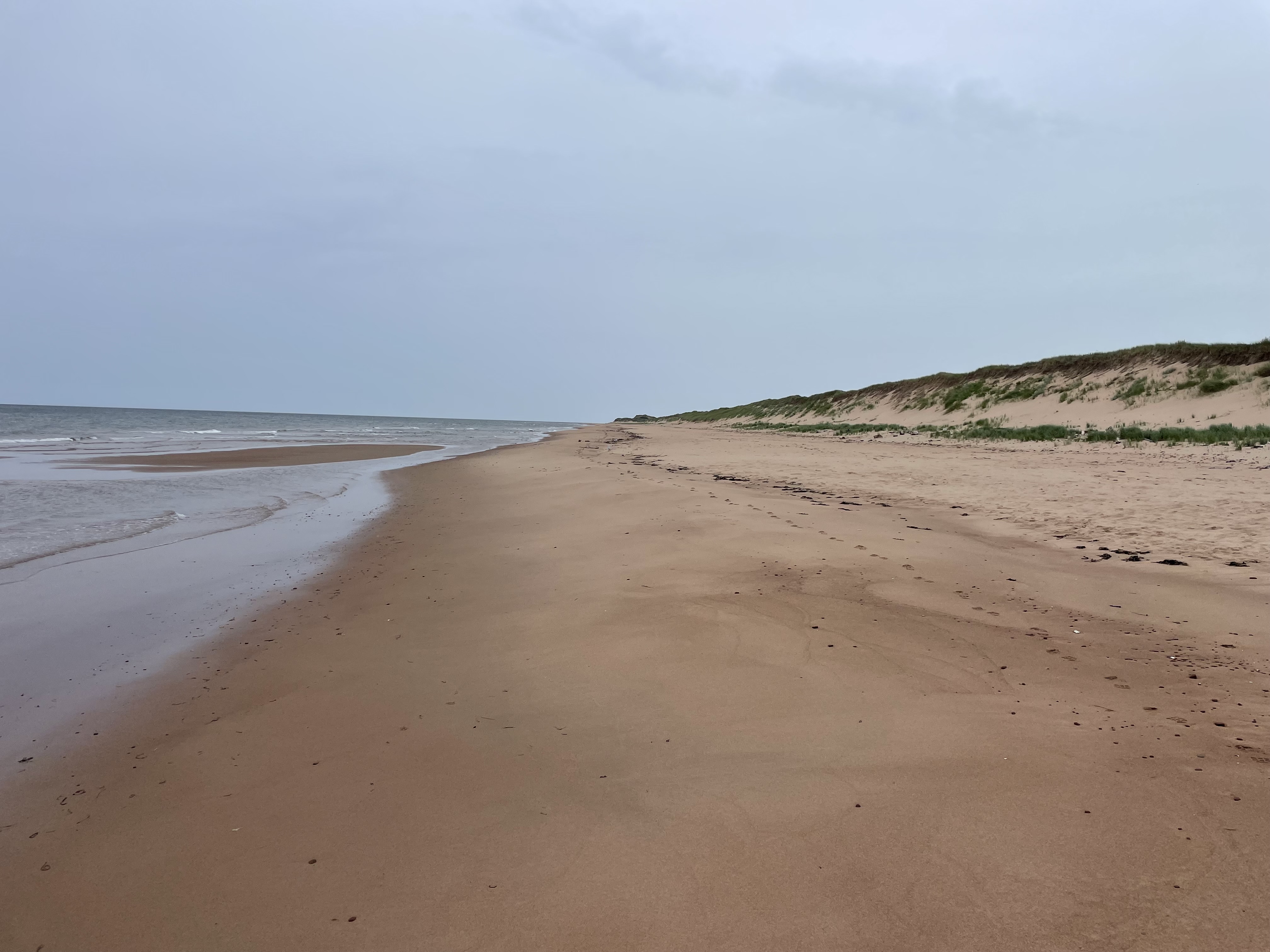 After crossing a sand dune covered in grass, I completed the trail on a completely empty beach.