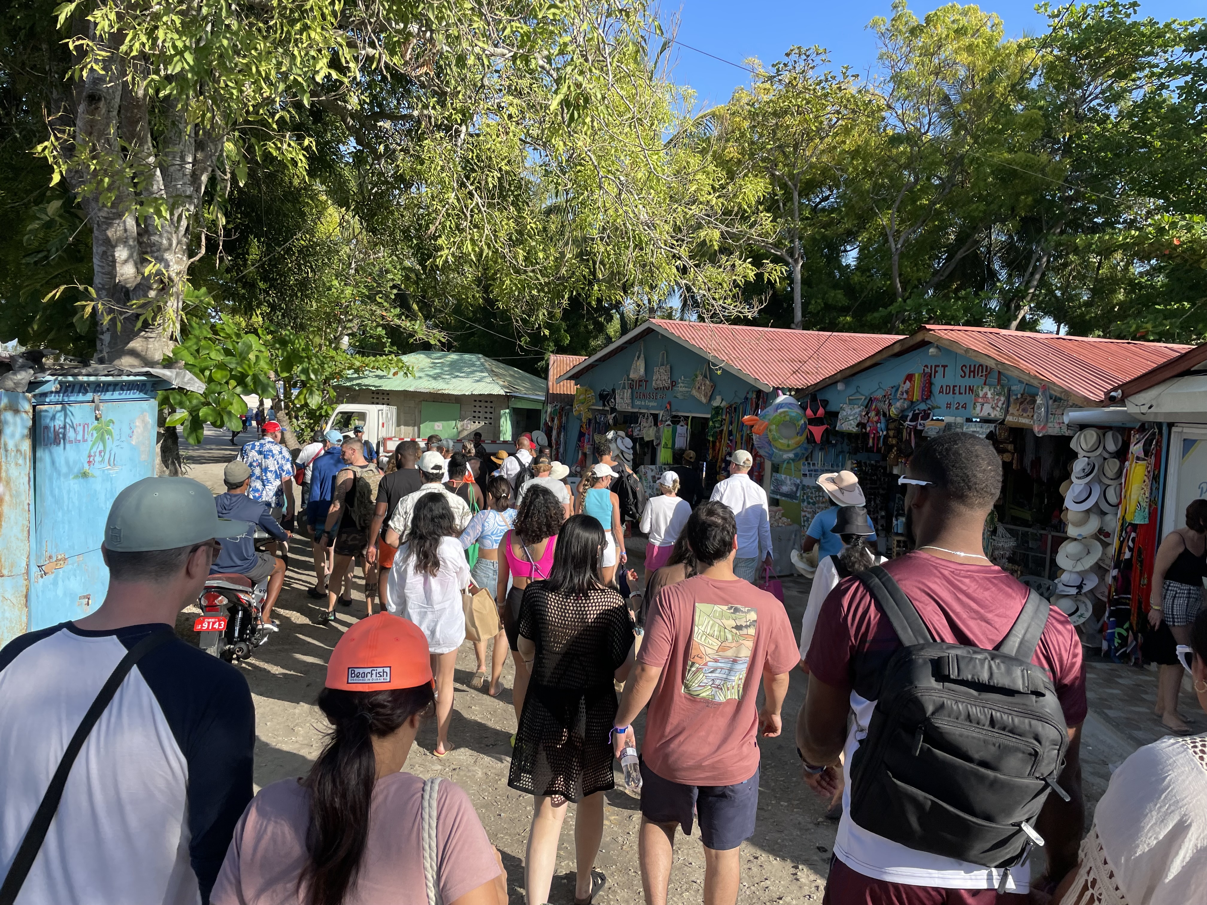 At 9:00, we finally made it to the town of Bayahibe. The beachfront want swarming with tourists boarding boats. Unfortunately, our speedboat was busy loading other tourists onto catamarans sitting in the water, so we had to wait about 45 minutes.