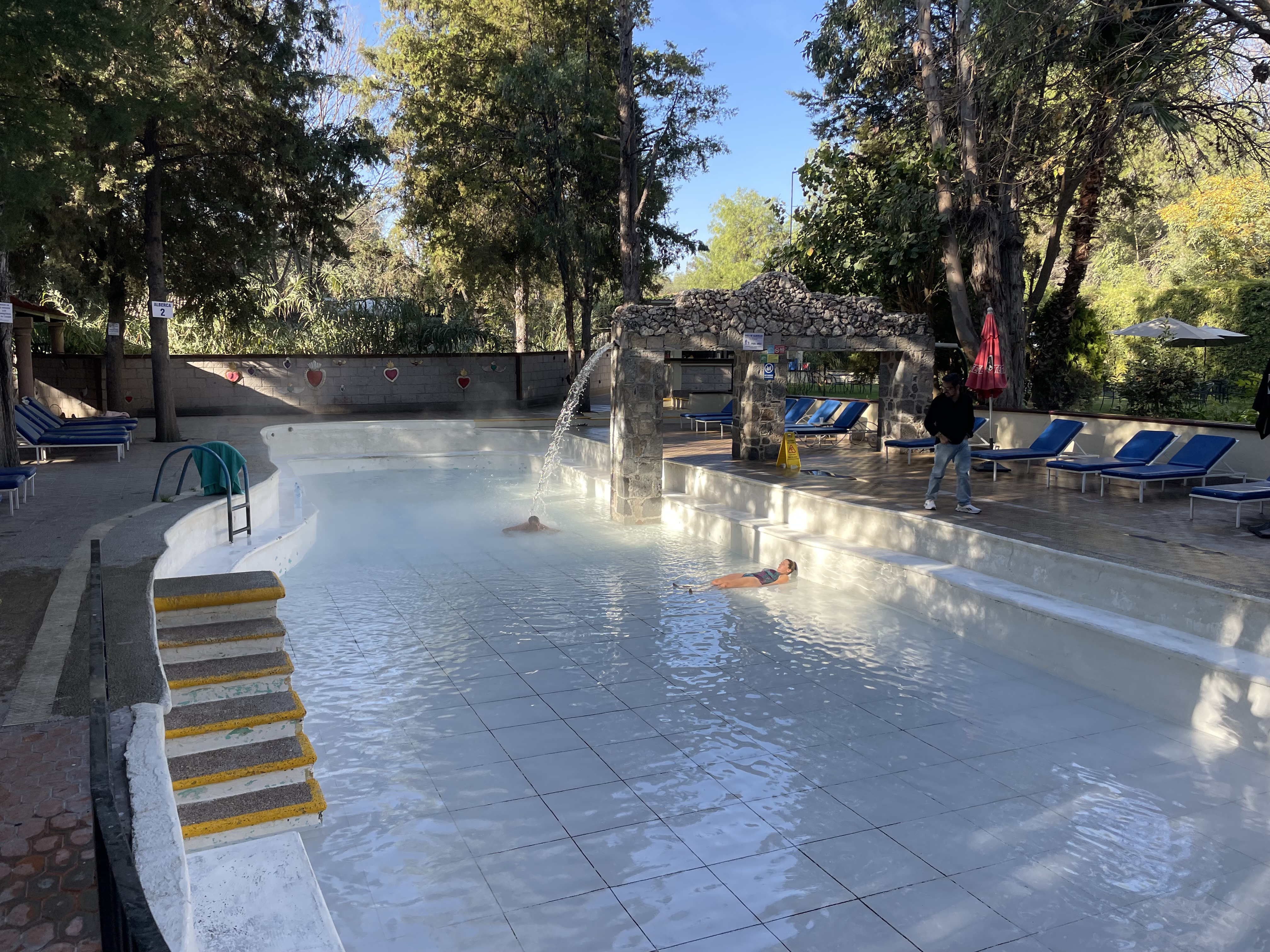The church opened later so I started with the hot springs. There are at multiple hot springs resorts near San Miguel. I picked La Gruta because it was the most conveniently located. Entry was 300 pesos ($15 USD) and allowed all day access. The resort contained several shaded hot spring pools. The crowd was a mix of families and couples. They had drink service too.