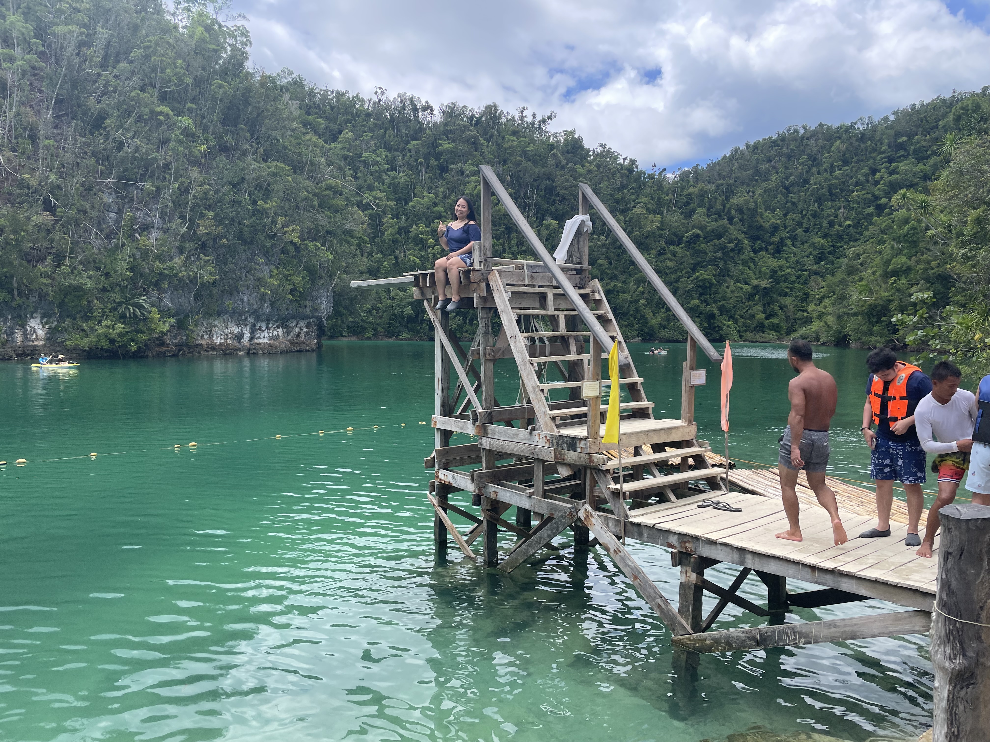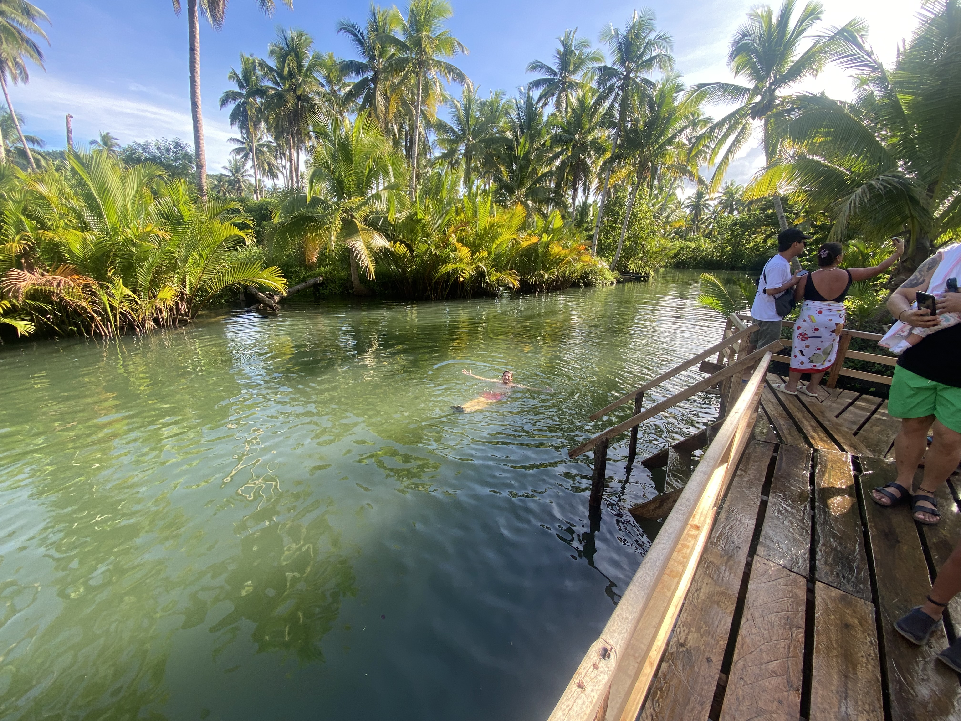 On the way back towards General Luna, we stopped at the Maasin River, a beautiful palm tree-lined river with a boardwalk. We had 30 minutes to hang out here. We spent the first 20 minutes jumping off their 5-meter-tall diving board into the river.