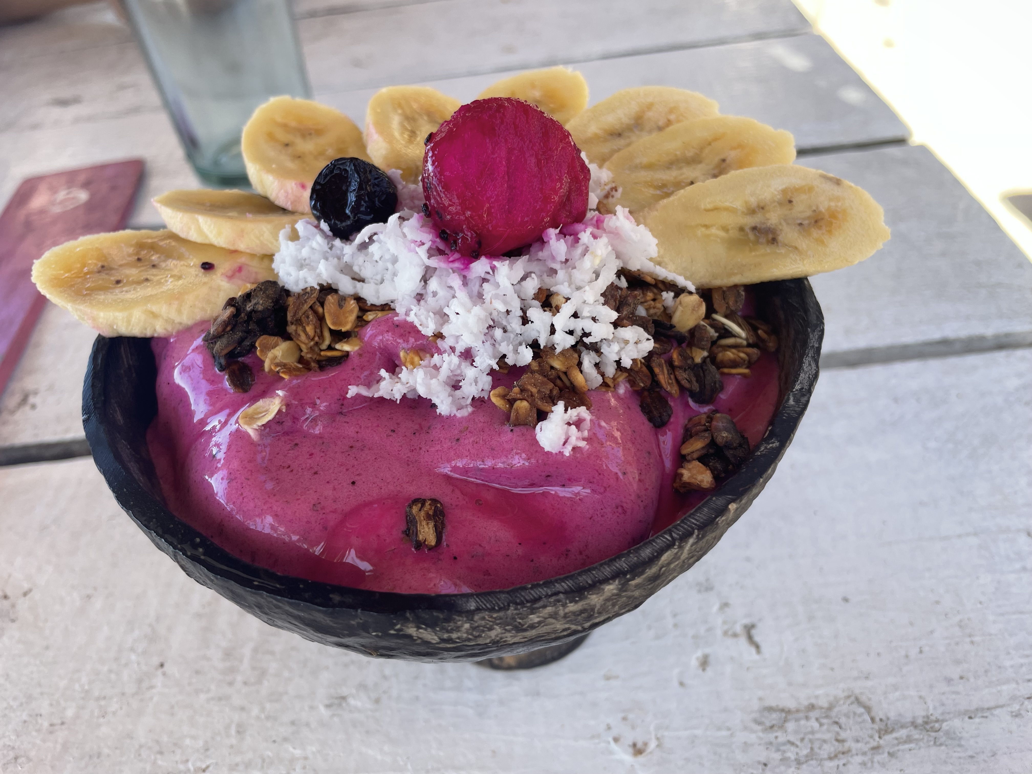After an hour of surfing, Maisie and I were exhausted (the yoga didn’t help either). We got a late lunch at the famous Shaka Café, another restaurant that started in Siargao but now has locations elsewhere in the Philippines. I got a smoothie bowl and Maisie got a hummus platter.