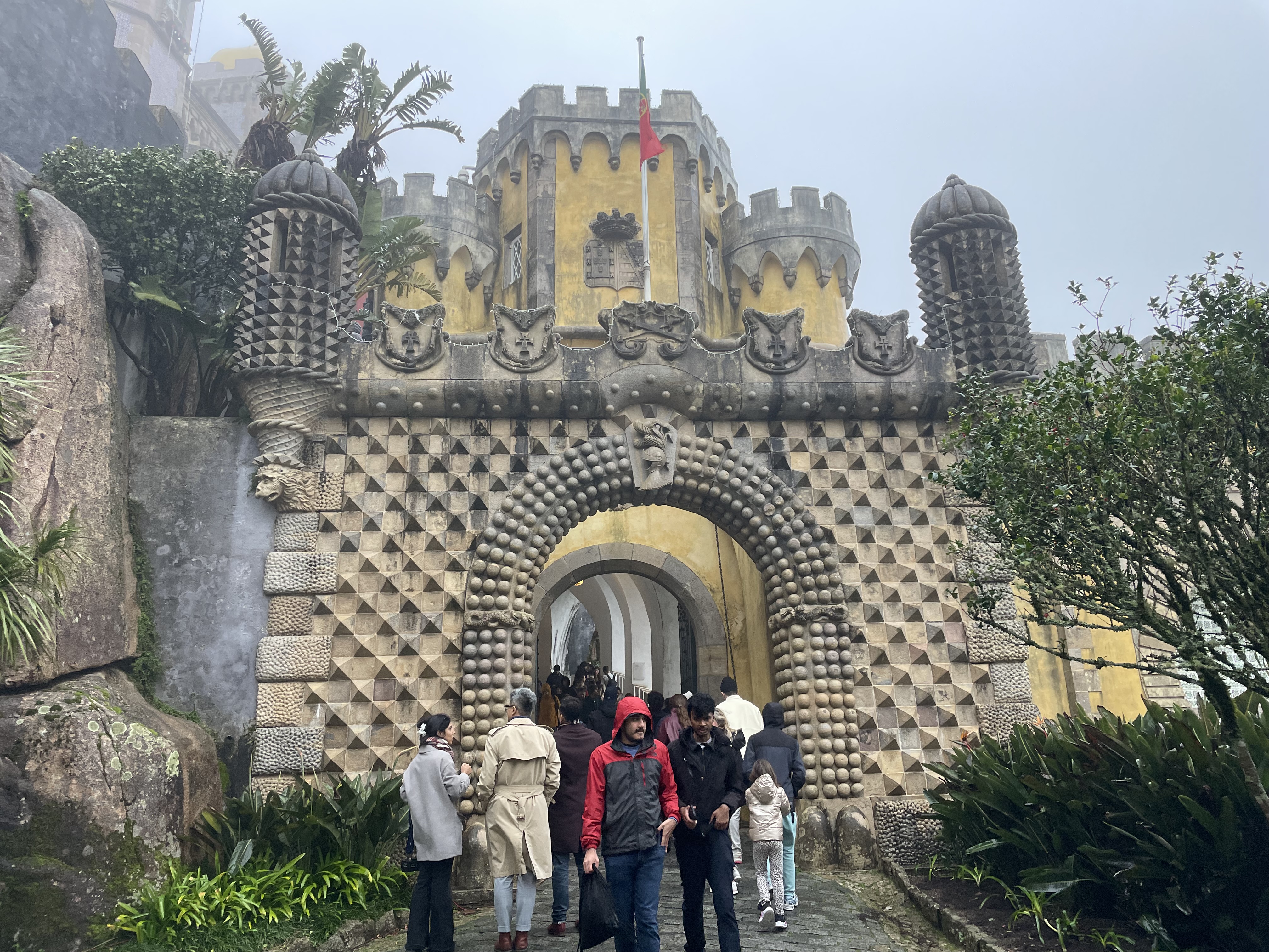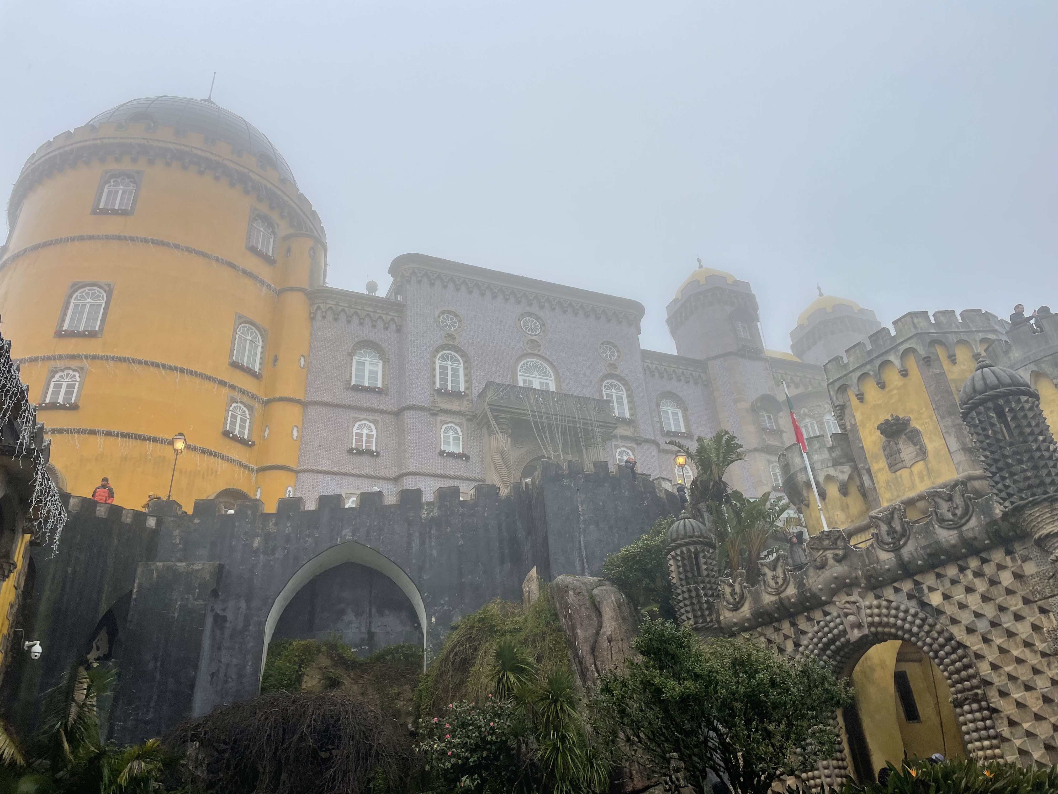 I started sprinting in the rain up the perilous and slippery footpath. Halfway up, I ran into none other than my college friend Katherine and her family. They were going on a guided Sintra tour and let me tag along. We reached the entrance to the palace at 10:35 which was apparently close enough because there was a huge line to enter the palace.