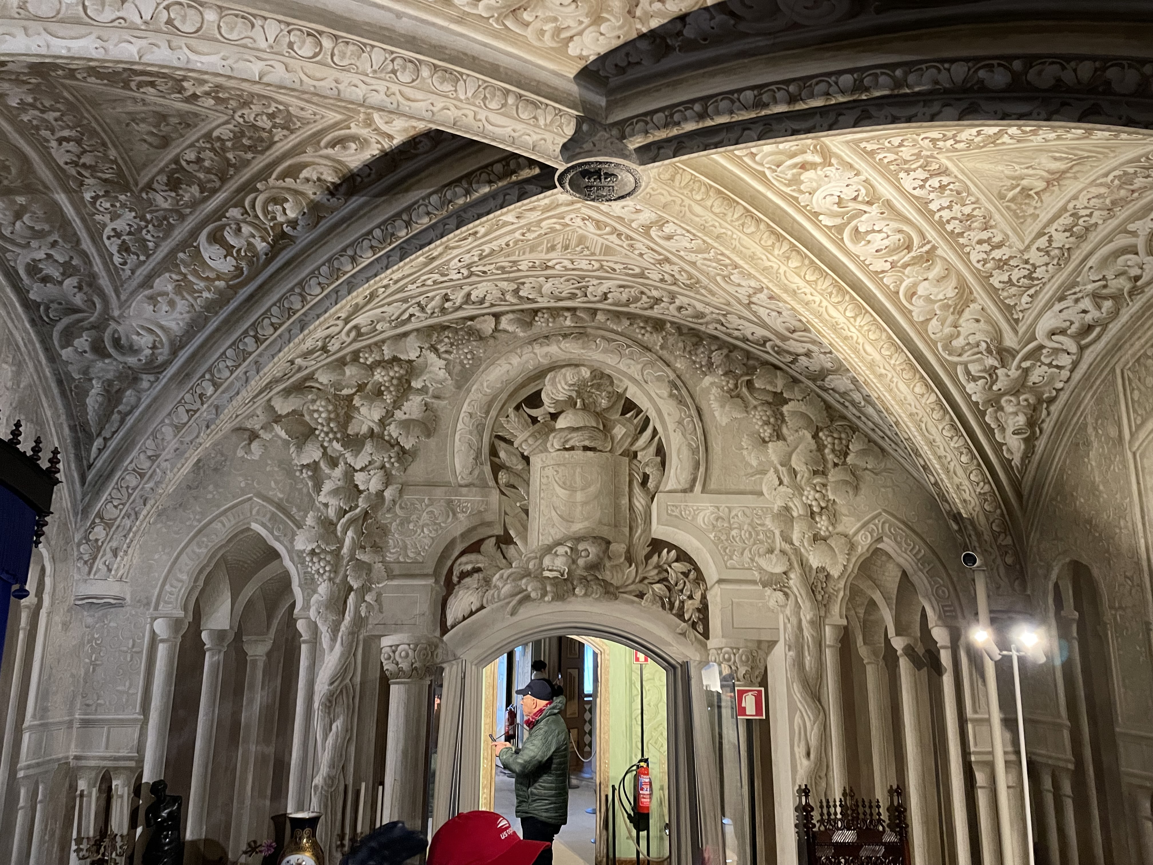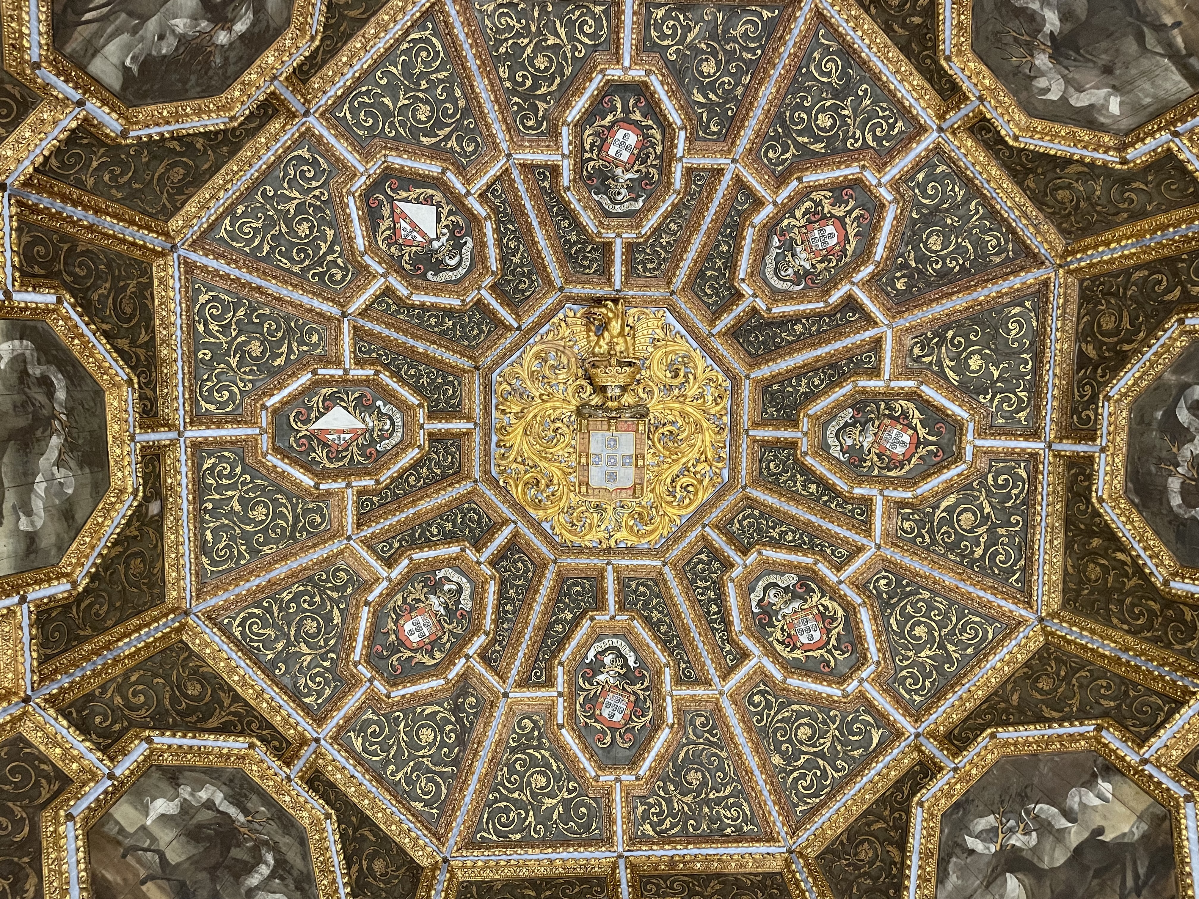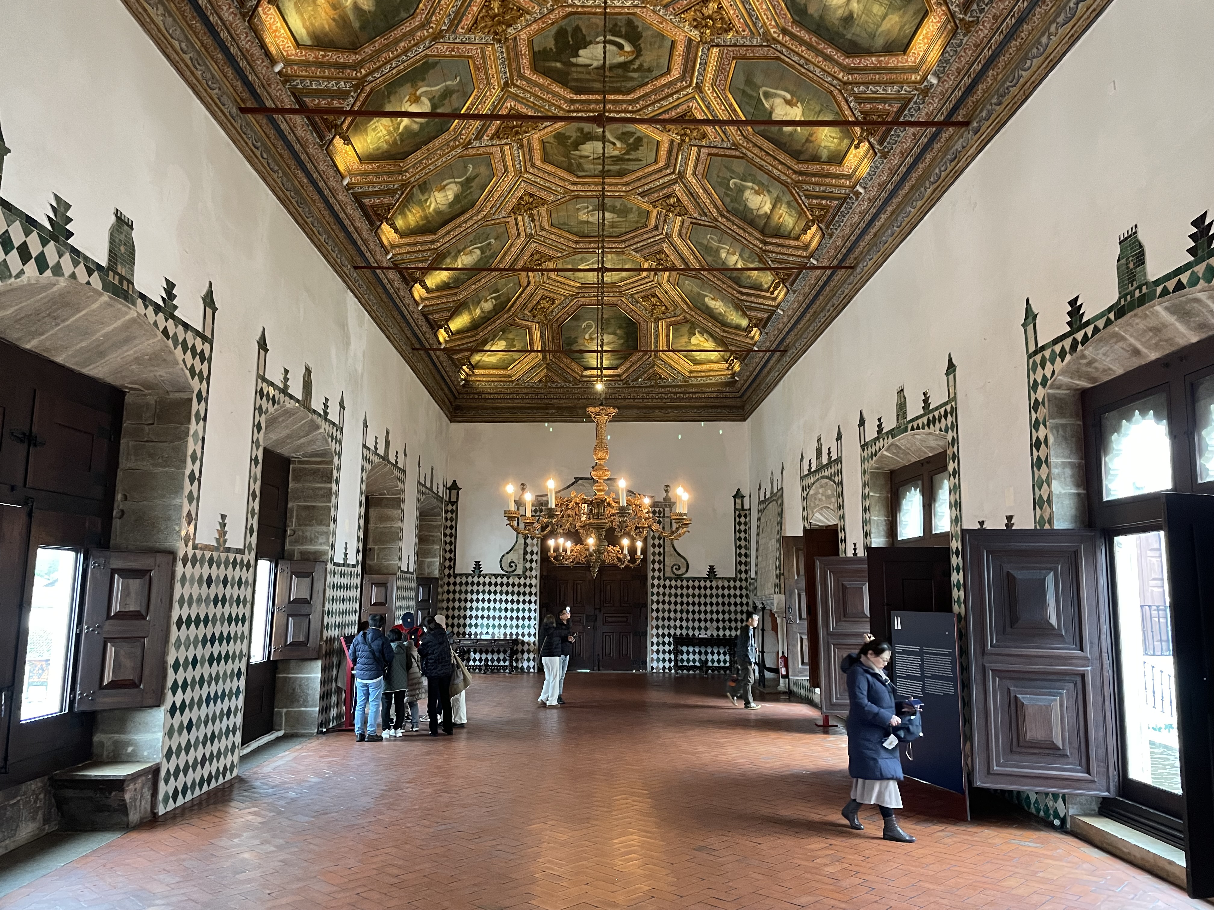 I then visited the National Palace of Pena aka the Town Palace. This 15th century palace was the only one in Sintra that was used as a working palace. The rooms were definitely simpler than in Pena, but still impressive. The ceilings were incredible.