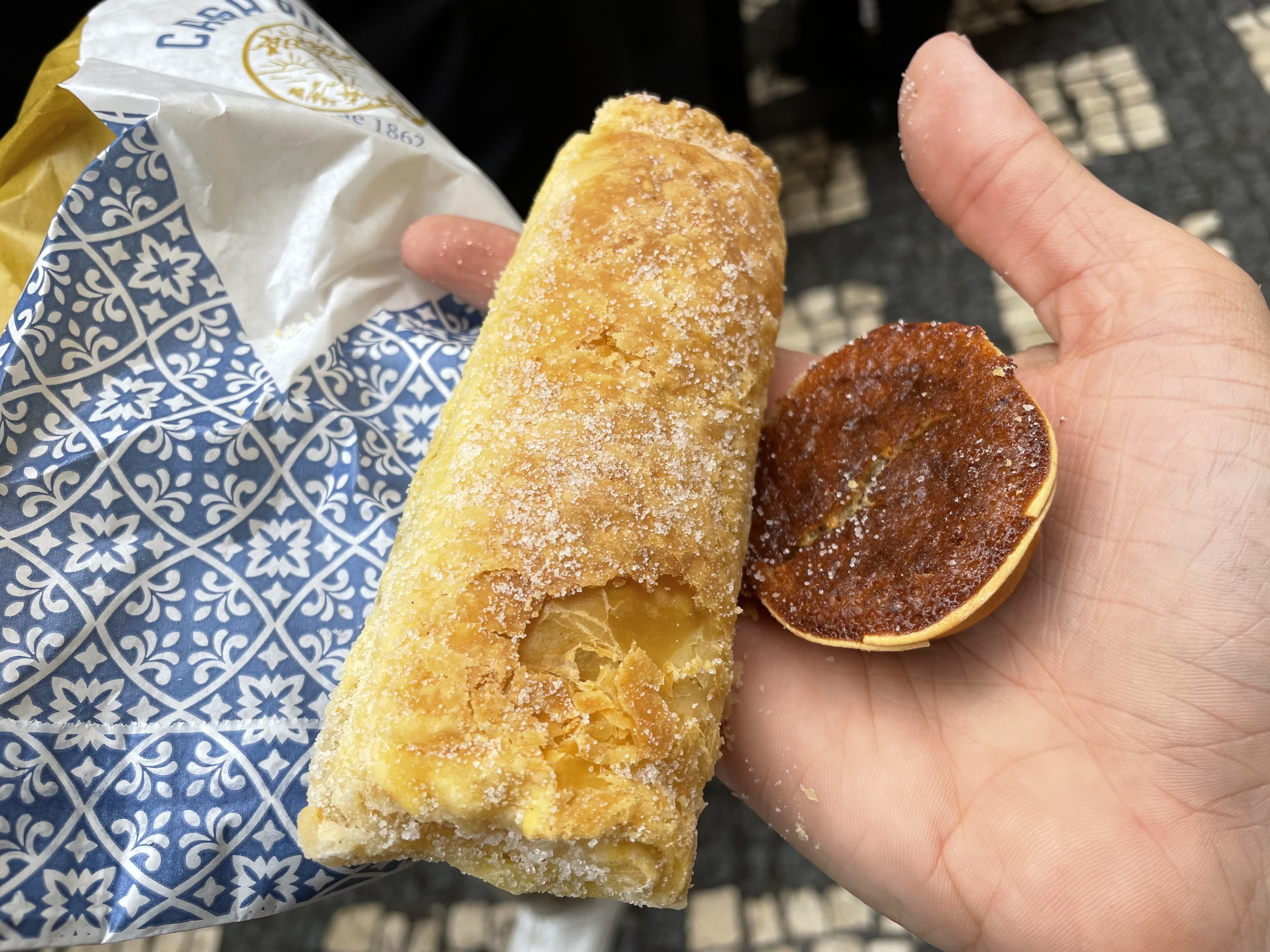 The oldest business in Sintra is the Piriquita bakery – open since 1862 aka just 8 years after the Pena Palace. The bakery is known a long pastry called a Travesseiro. Sintra as a city is known for a pastry called a Queijada. I got one of each.