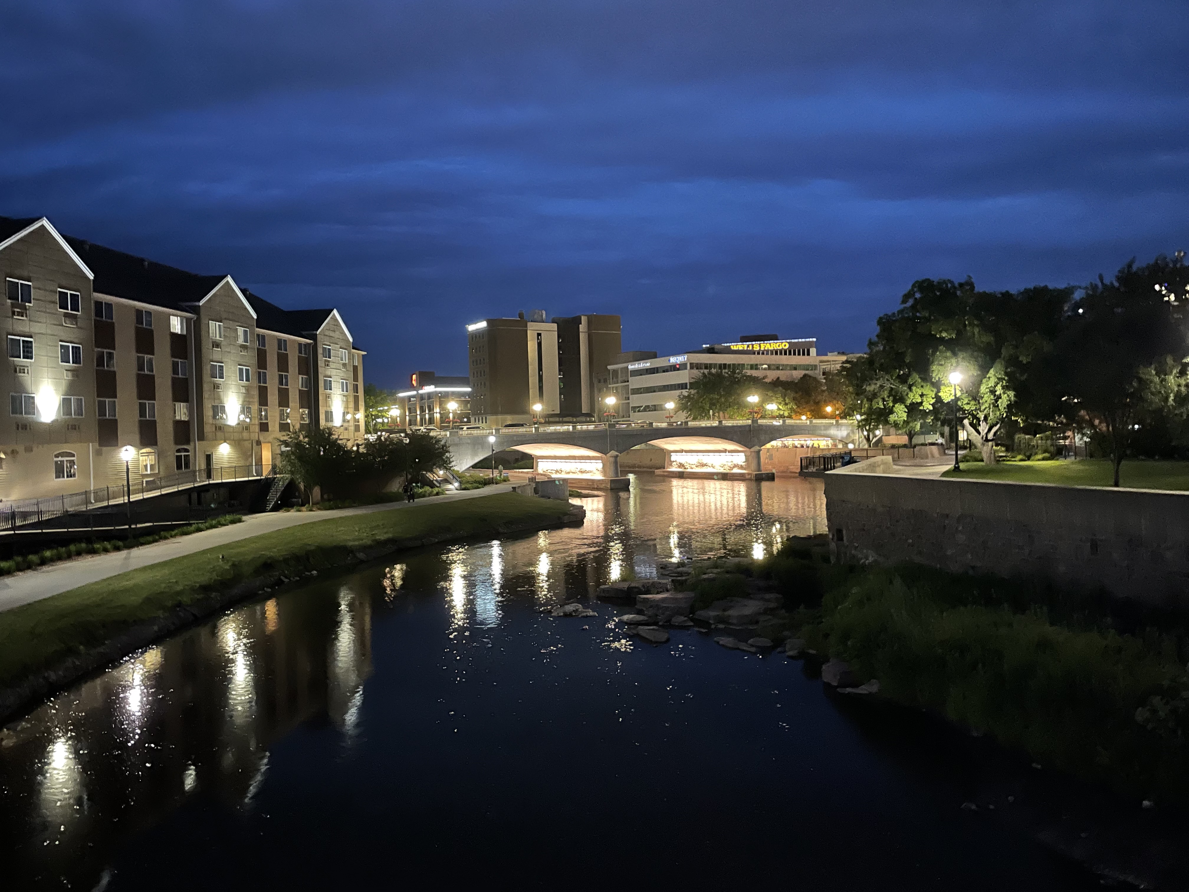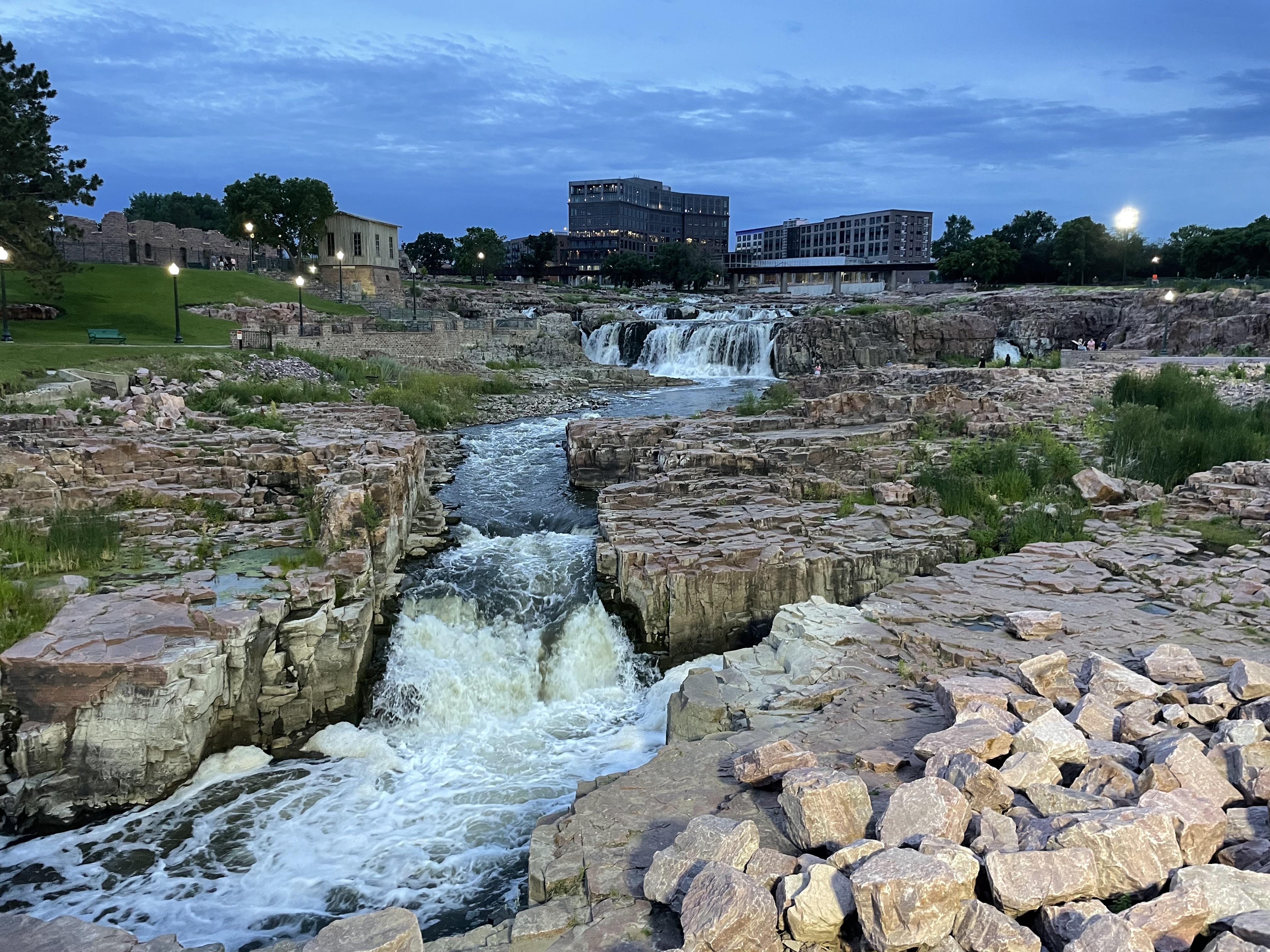We then headed into downtown to check out the Falls Park, home of the namesake falls of Sioux Falls. The downtown was bumping. Not only was the main avenue packed with pedestrians but there was also a free concert in the brand-new Levitt bandshell.